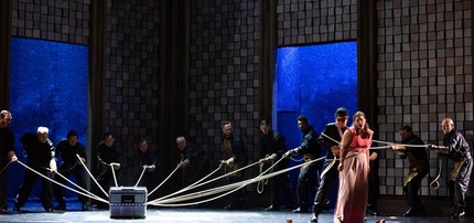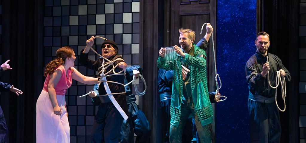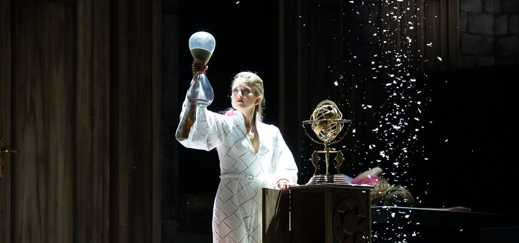Мизансцены у К. Лутц выстроены с математической строгостью: ни одного лишнего шевеления на сцене, всё по делу, каждый жест осмыслен, каждая эпатажная эскапада добавляет ясности, а не запутывает простое. Нам показывают сказку. Настоящую сказку, в которой главный герой буквально падает с неба, в которой герои одновременно появляются и исчезают в сложно выстроенных декорациях (сценограф Кристиан Табакофф), незаметно меняют внешний вид (костюмы Дороти Джойстон), проваливаются под землю и спускаются по канатам. Перед нам синтез циркового шоу и театрального представления, от которого невозможно оторвать глаз. Эта захватывающая внимание подача вынуждает нас в итоге осознать главную гуманистическую ценность жизни — саму жизнь и любовь, её порождающую. Именно в этом гуманистическом пафосе и состоит величие «Волшебной флейты», а не в тех инструментальных деталях и метафорах, которые выполняли в либретто Шиканедера исключительно прикладную функцию, проще говоря функцию «прикола», а не элементов художественной идеи. Как те самые серебряные колокольчики, ставшие по одной из версий «спусковой» причиной создания этой фантастической партитуры: очень уж хотелось Шиканедеру на сцене ими подребеденькать.