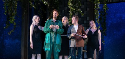 Три дамы из свиты Царицы ночи в прекрасном исполнении Юлии Моорман, Оливии Косио и Верены Гунц, как три отчаянные домохозяйки, взваливают на свои плечи программу экзистенциального эксперимента над юными душами в храме волшебника Зарастро, в партии которого, в свою очередь, блестяще выступил бас Андреас Хёрль.