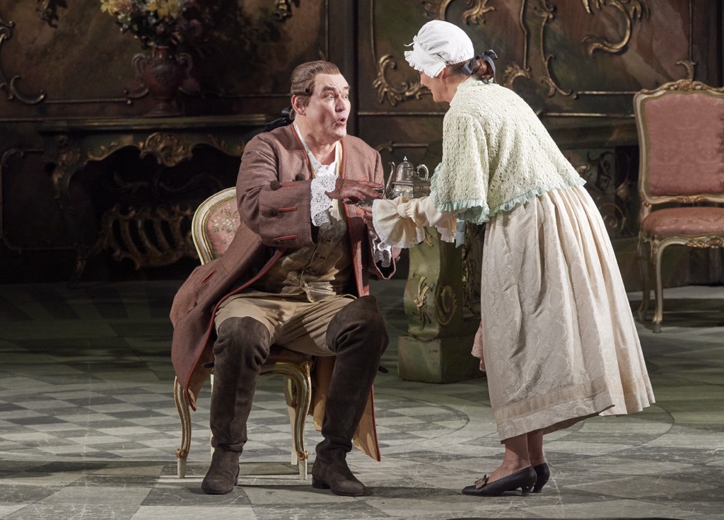 «Кавалер розы» — опера для ироничной медитации, для вдумчивого наблюдения. В образе главной героини мы видим и преданную супругом императрицу Сиси, и властную «бабушку всея Австрии» Марию Терезию, и легко угадываем реальных прототипов – и Верденбергов, и Карла-Рудольфа Вюрттемберг-Нойенштадтского, и его бездетную гражданскую супругу Марию Терезию, и дорогое сердцу авторов имя фон Лерхенау, и тонко показанный способ быстро разбогатеть в Вене XVIII в. и т.д., и т.п. Работа с таким материалом в таком месте, как Венская опера, — дело подрасстрельное. И маэстро Филипп Джордан справляется с этой задачей идеально.