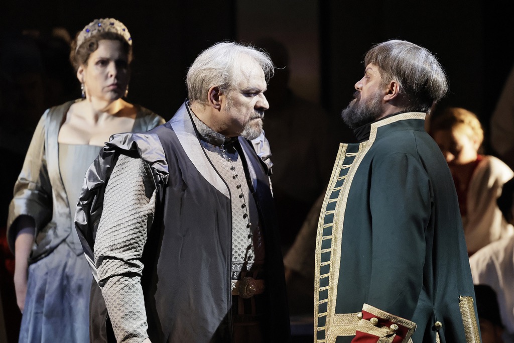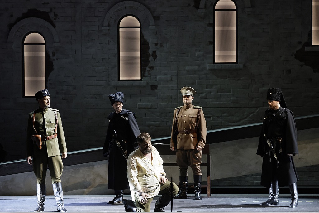 Дирижер-постановщик Туган Сохиев (главный дирижер и музыкальный руководитель театра) подавал музыку довольно напористо и жестко, словно рубленным на фрагменты потоком, так что тонких нюансов и «говорящей» содержательности ей ощутимо не хватало. По формальным признакам всё было вполне зачетно, но как же невообразимо скучно и однообразно! Драматического стержня, как и подкупающей проникновенности лирических страниц, эта музыка на сей раз была лишена. Впрочем, мощный хор Большого театра, хотя «вкрапление» в него ансамблей было далеко не всегда безупречно, звучал в фирменной эпической манере (главный хормейстер – Валерий Борисов), и понятно, что его главный ударный «бенефис» как всегда пришелся на массовую финальную картину второго акта.
