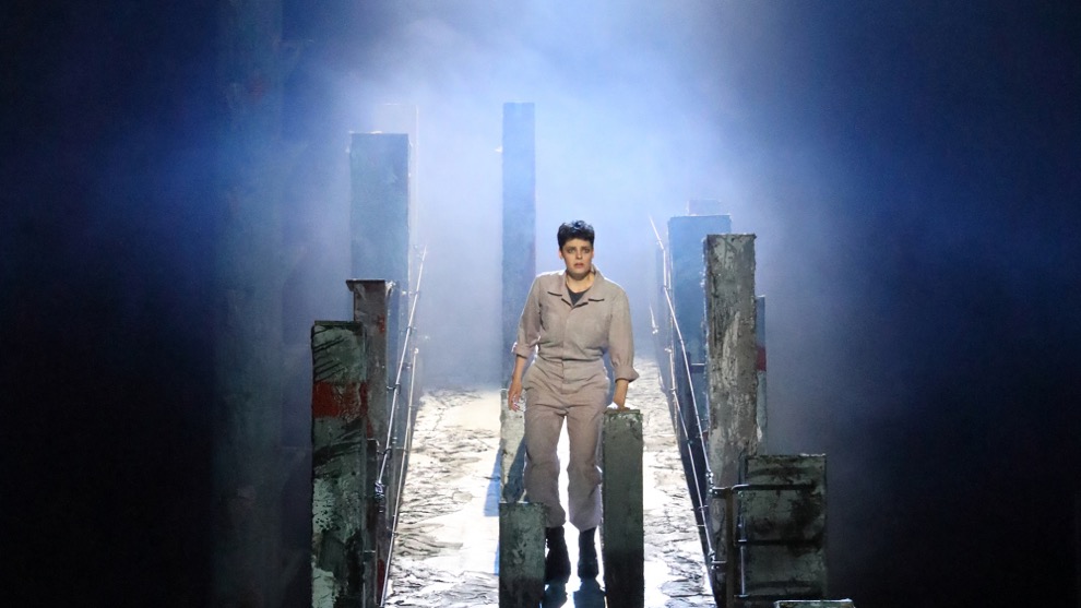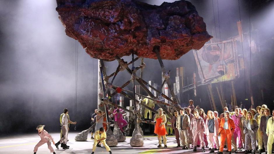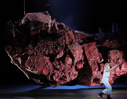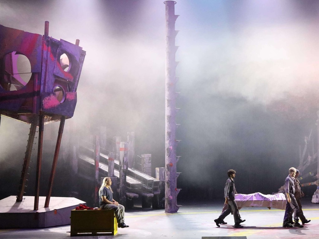 Британская искусстница, или, как написано в Википедии, деятельница искусства, Филлида Барлоу отстаивает в своём творчестве ископаемый квазидадаизм, или, проще говоря, брутально оформленное нагромождение барахла: строительных реек, лесов, булыжников, бытовок, гипсовых фантазий и т.п. хлама. В Мюнхене это любят, поэтому людям со вкусом приходится терпеть. В конце концов, у нас эко-терроризм в моде: зачем что-то выбрасывать, если можно просто отнести на сцену Принцрегенттеатра, верно? Ну это примерно всё, что нужно знать о постановке и о её оформлении.