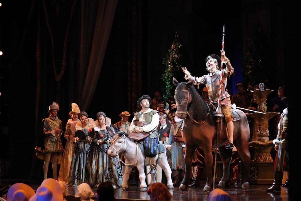 В марте прошлого года, еще до общенационального локдауна, связанного с пандемией COVID-19, Башкирский государственный театр оперы и балета на Исторической сцене Большого театра России успел показать роскошную постановку оперы «Аттила» Верди (премьеру 2019 года). Прошло около полутора лет – и из Уфы в Москву прибыл не менее роскошный «Дон Кихот» Массне. Для Аскара Абдразакова, сегодняшнего художественного руководителя Башкирской оперы, эта постановка стала блистательным режиссерским дебютом. Костюм Дон Кихота в этом спектакле – копия костюма Фёдора Шаляпина: для первого исполнителя партии странствующего идеалиста-мечтателя в свое время он был создан по эскизам Александра Бенуа. И это значит, что более чем через сто лет после премьеры оперы в Монте-Карло Дон Кихот не умер и по-прежнему жив!
