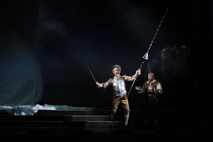 Прелестная «безделушка» Массне с ее музыкальной эклектикой наивна и трогательна, меланхолически тонка и безудержно зажигательна. Но эта суперкомпактная героическая комедия, прежде всего, трагична, поэтому личность исполнителя главной партии в этой опере и есть то, что по большому счету и делает эту далеко не однозначную по своим музыкальным достоинствам партитуру подлинной оперой. Аскар Абдразаков – один из тех, кому это оказалось в полной мере подвластно. К слову, этот певец спел Дон Кихота и в мариинской постановке: вспомнить хотя бы ее путешествие в Казань в феврале 2013 года, где она вскоре после премьеры в Санкт-Петербурге (28 декабря 2012 года) была показана в рамках XXXI Международного оперного фестиваля имени Фёдора Шаляпина в год 140-летия со дня его рождения.