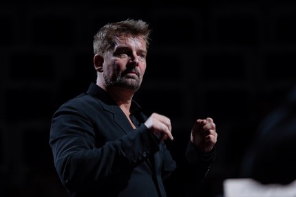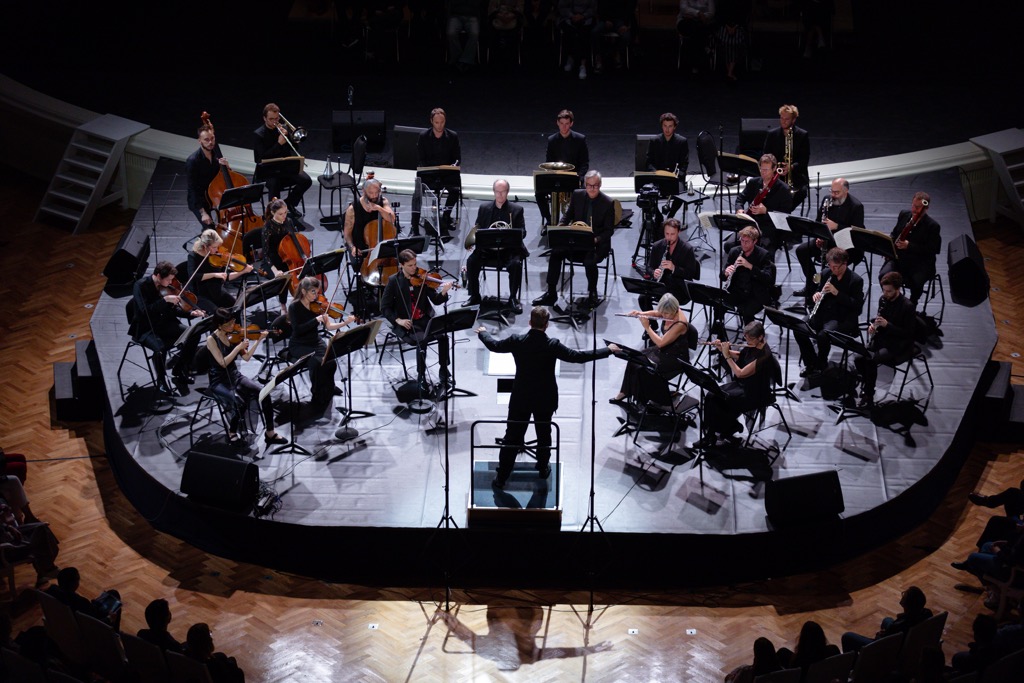 Парижский Ensemble Intercontemporain, основанный Пьером Булезом в 1976, входит в «большую четверку» выдающихся европейских ансамблей современной музыки, наряду с Ensemble Modern, Klangforum Wien и Ensemble Recherche. В ноябре 2020 на фестивале «Другое пространство» коллектив выступил в сокращенном составе (8 инструменталистов и дирижер Дилан Корлей), в этот раз развернулся во всю мощь: 31 инструменталист, звукооператоры из IRCAM (французского Института исследования и координации акустики и музыки, также созданного Пьером Булезом) и дирижер – руководитель ансамбля (с 2013) композитор Маттиас Пинчер.