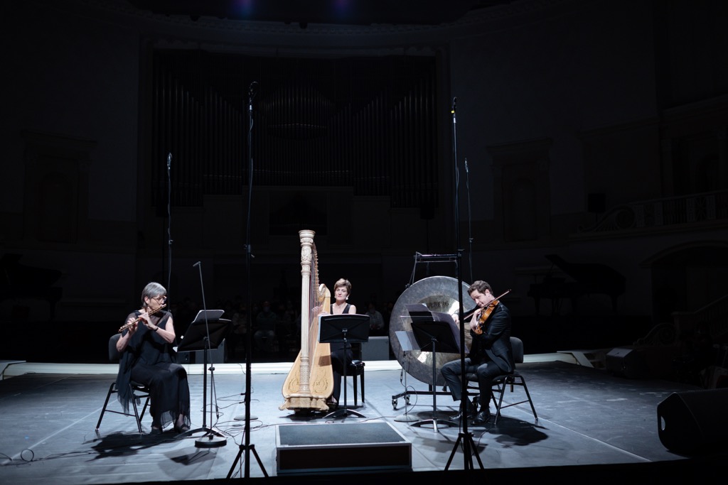 Трио «beyond II» (2020) для флейты, альта, арфы Маттиаса Пинчера, написанное в прошлом пандемическом году, оказалось самым «дружелюбным» к слушателю, дав передышку после перенасыщенного фовизма Робена и музыкальной ризомы Вареза. Пинчер-композитор обитает в разреженном звуковом пространстве, для него важна эстетика пустоты – минимум звуков и ощущение воздуха, в котором осторожно, наощупь движутся друг к другу тембры инструментов. Сам автор указывает на связь этой композиции с Сонатой Дебюсси, написанной для того же состава – с тем же утонченным колоритом, интроспективностью и хрупкостью.