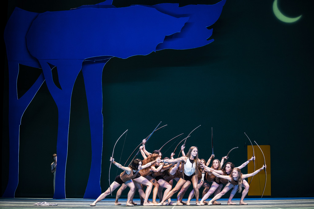 В музыке, сопровождающих появление нимф Дианы, угадывается вагнеровский Полёт валькирий (оркестр выступает под управлением Маркуса Летинена). Лучницы врываются на сцену с боевым кличем.