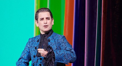 Вокальное открытие главной весенней премьеры прошлого сезона баритон Этьен Дюпуи с головокружительным блеском исполнил титульную партию. Певец идеально звучал в ансамблях, создавая образ изворотливого хвастуна, ни одна из идей которого, несмотря на всю их остроумность, так и не привела к успеху.