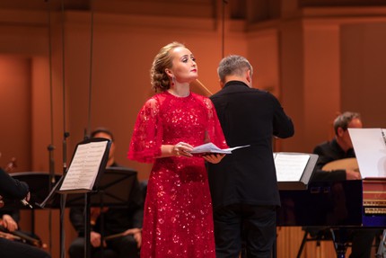 Но как бы то ни было, Юлия Лежнева (Наслаждение) и Карло Вистоли (Разочарование) мастерски создали ту главную музыкальную опору, за которую, ничуть не растерявшись, уцепились и сопрано румынско-швейцарского происхождения Ана Мария Лабин (Красота), и тенор чилийско-швейцарского происхождения Эмильяно Гонсалес Торо (Время). Первая предстала носительницей скромного от природы, тембрально неяркого голоса и встроиться в здание музыки смогла лишь номинально: бальзамом для души ее формально-аккуратное пение так не стало. У второго «с душой» всё было в порядке, но его чрезмерная силовая манера звуковедения всё время шла вразрез с музыкальным стилем. Этот же певец в партии Коменжа в «Луге писцов» Герольда на сцене «Опера комик» в Париже шесть с половиной лет назад был куда более мастеровит! Однако, увы (и это, однозначно, в контексте оратории!), ничто не вечно: много воды утекло с тех пор, многое изменилось…