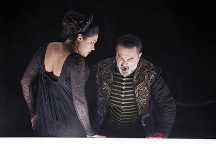 Место за дирижерским пультом занял, кажется, навечно «прописавшийся» в Москве и в Большом театре «всё еще поющий» в свои 80 лет (кавычки здесь далеко не случайны!) тенор-баритон Пласидо Доминго, активно привечаемый у нас на государственном уровне в качестве фактора мягкой политической силы. Именно она и прокладывает дорогу сквозь эмпиреи академической музыки, врезаясь в массовое сознании широкой, неискушенной публики, с легкостью впадающей в эйфорию от имен-брендов. Так что баритон Доминго за дирижерским пультом и сопрано Анна Нетребко, лучше которой в мире сегодня никто уже и не поет, будучи вовлеченными в один театральный проект, должны были стать той музыкальной бомбой, от творческого взрыва которой стены Новой сцены Большого театра, принявшей сей гламурный проект, просто не могли бы не содрогнуться!