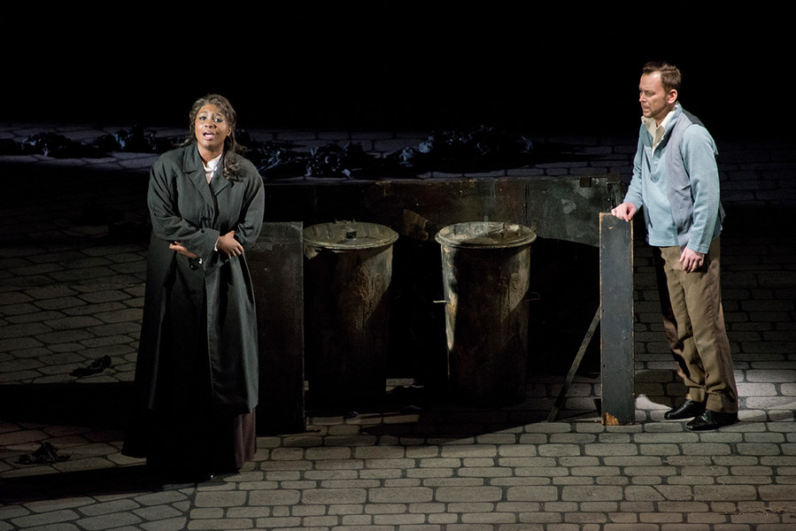 Драматическое объяснение Мими и Рудольфа в третьем действии происходит рядом с мусорными баками. Незадолго до этого чьи-то слуги выбрасывали в них отходы, рылась нищенка с корзинкой. Мими пряталась за этими баками, подслушивая разговор Марселя и Рудольфа. Потом Мими и Рудольф нашли в мусорных баках опору в тяжёлую минуту. Намекают ли так постановщики на то, что они не только грязи не боятся, но и вообще отбросы общества?