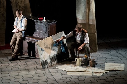 Государственный советник Альциндор (Бернд Цеттиш), спутник Мюзетты в кафе, появляется в пальто с меховым воротником, которое не снимает, несмотря на то, что подчёркнуто задыхается в нём от жары. Поскольку в таком же пальто в баре был советник Линдорф в гамбургских «Сказках Гофмана», я в своё время решила, что в этом образе выведен на сцену сам Оффенбах. Теперь для меня это пальто приобретает вид театрального клише для создания образов буржуазных господ – любителей артисток.