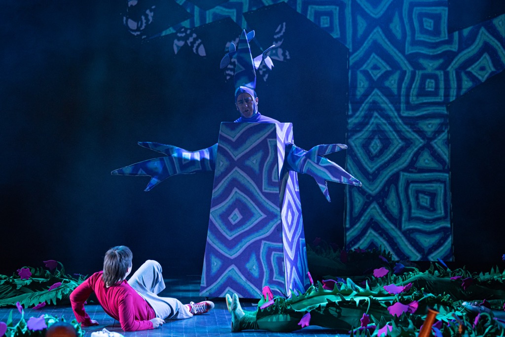Итак, показы оперы «Дитя и волшебство» Равеля состоялись 6 и 7 декабря 2021 года на сцене Детского музыкального театра юного актера. Режиссерами обучающей постановки в рамках проекта «Оперный класс» стали художественный руководитель названного театра Александр Фёдоров и Екатерина Василёва, которая в 2012 году как раз и осуществила постановку этого опуса в московской «Новой Опере». Очень трудно судить о вкладе в этот спектакль первой из двух названных персоналий, ибо казалось, что на сей раз постановка Екатерины Василёвой просто перебежала из сада «Эрмитаж» в Каретном ряду на улицу Макаренко на Чистых прудах… Сценографический реквизит, видеографические решения с использованием проекционного задника-экрана и необычайно креативные, изумительные костюмы, апеллирующие к абстрактно изящным, легко считывающимся ассоциациям, и сама волшебная оркестровка Равеля тотчас же вызвали мощное ощущение déjà vu.