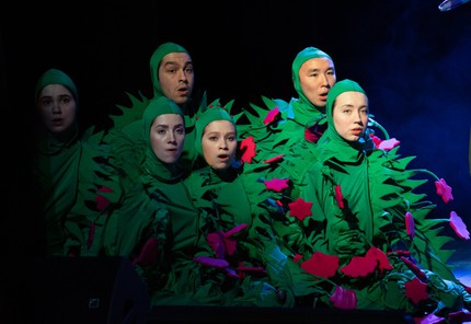 Художественного руководителя и главного дирижера оркестра Musica Viva на этом проекте «заменил», как было сказано ранее, Дмитрий Корчак, а к музыкантам и дирижеру примкнули Камерный хор Московской консерватории (художественный руководитель – Александр Соловьев) и учащиеся Московского хорового училища имени А.В. Свешникова при Академии хорового искусства имени В.С. Попова. В постановочной команде вместе с режиссерами Екатериной Василёвой и Александром Фёдоровым, конечно же, по-прежнему значатся сценограф Александр Арефьев, художник по костюмам Мария Чернышёва и видеодизайнер Александра Комарова, а художника по свету программа на сей раз почему-то не называет. Как видим, речь о «ротации» постановочных кадров практически не идет…