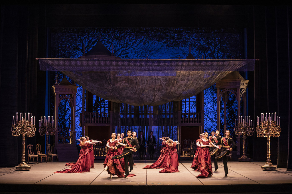 Пока принц, перед тем как оказаться на балу по случаю 16-летия Авроры, размышляет об уже увиденном на фоне стенда с портретами балерин Ольги Преображенской и Пьерины Леньяни, балетмейстера Льва Иванова и проч., неожиданно звучит оркестровая версия романса Чайковского «Я ли в поле да не травушка была». Конечно, Джону Ноймайеру виднее, но мотив русской народной песни, выражающий горе девушки, повенчанной «с немилым да седым», не слишком подходит к этому фееричному балету по французской эротической сказке, даже для подкрепления философско-меланхоличных размышлений.