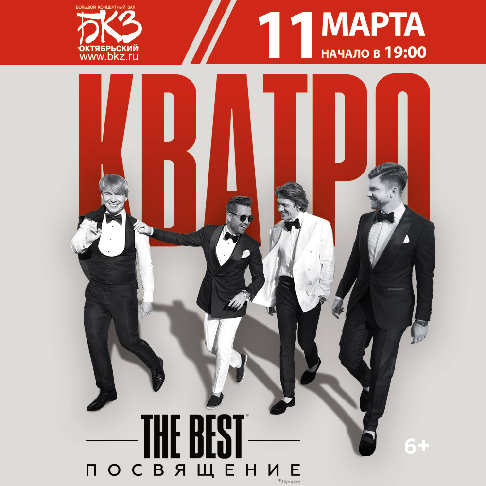 11 марта в БКЗ «Октябрьский» состоится грандиозное шоу — большой сольный концерт российской вокальной группы «КВАТРО» с симфоническим оркестром.