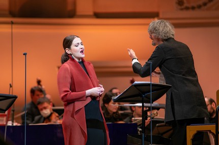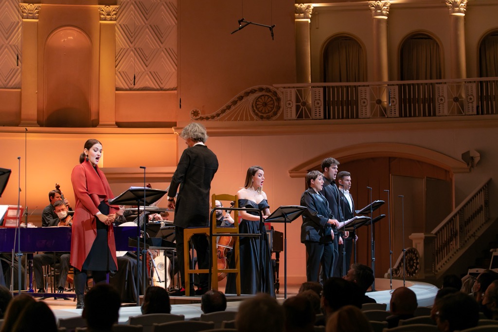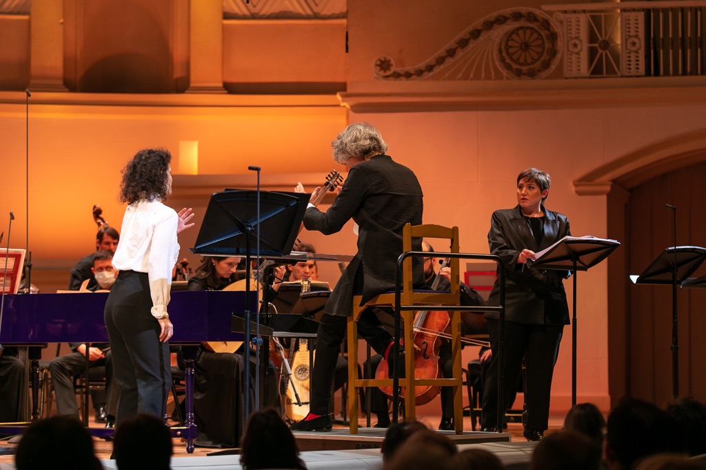 На сей раз в Москве раскладка голосов согласно официальной программе проекта была следующей. В партии Аристеи мы услышали меццо-сопрано из России Марию Остроухову, а в партии Мегакла – меццо-сопрано из Израиля Шакед Бар. В партии Арджены выступила меццо-сопрано из России Дарья Телятникова, а в партии Ликида – контральто из Италии Маргерита Мария Сала. Так что теперь обе главные мужские партии – Мегакл и Ликид – стали традиционными партиями-травести. А при фактурно-неброских женских голосах, их практически «серийной» одинаковости и априори встроенном в сознание «отвлекании» на объективно закономерную травестийность, в условиях концертного исполнения впору было даже запутаться, кто есть кто в этой опере…