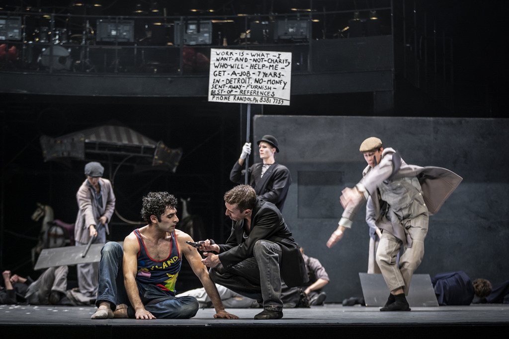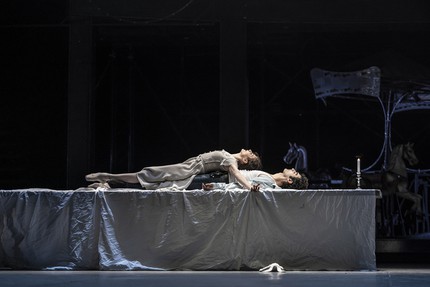 Проводником между земным и потусторонним мирами выступает продавец воздушных шариков (Флориан Поль); в поддержках ноги солистов путались в его огромном «букете».