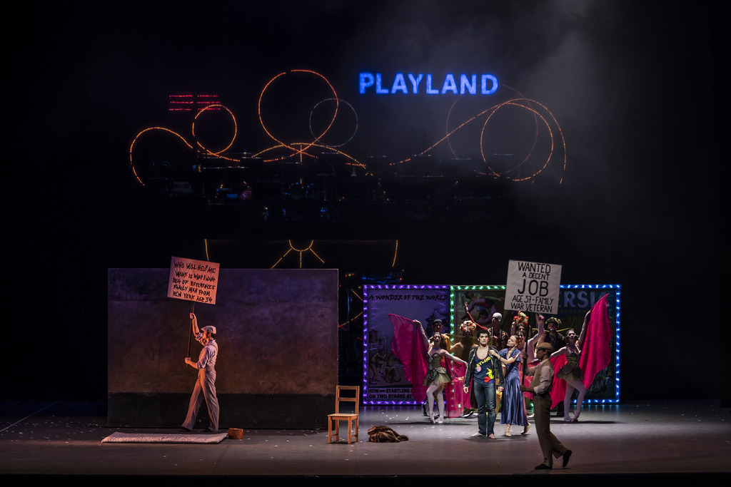 Музыку специально для этого балета написал Мишель Легран, известный кинокомпозитор («Шербургские зонтики», «Афера Томаса Крауна»). Исполняют её одновременно Филармонический государственный оркестр Гамбурга и джазовый оркестр Северно-Германского радио NDR Bigband. Последний располагается на постаменте вверху в глубине сцены и, завешенный полупрозрачным занавесом, является элементом общего сценографического решения. На занавесе загораются и исчезают тонкие переплетающиеся кольца рекламы парка развлечений. Джазовые музыканты видят дирижёра (Натан Брок) только на мониторе.