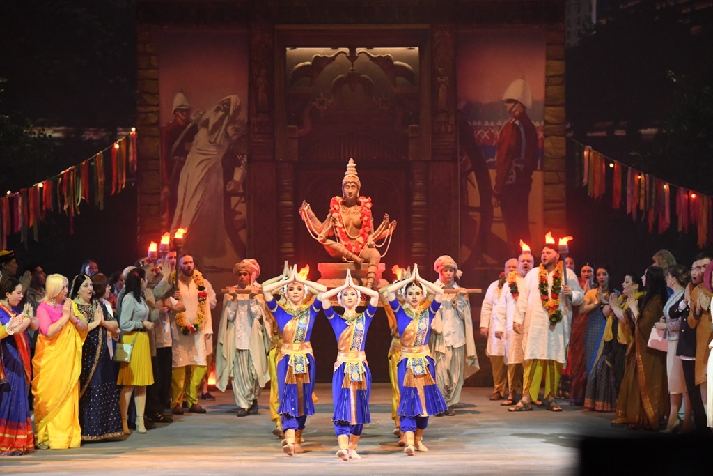 Но как бы то ни было, всё сюжетное действо, пусть и разделенное в спектакле двумя антрактами, предстает необычайно компактным, как говорят в таких случаях, сквозным и переживается из зала буквально на одном дыхании! При этом режиссер, выводя Нилаканту мятежным брамином, открыто противостоящим властям, весьма к месту и чрезвычайно эффектно, в союзе со сценографом, вплетает в визуальную ткань спектакля загадочную, но реальную историю картины Василия Верещагина «Казнь из пушек в Британской Индии», написанную им в 1884 году (через год после премьеры «Лакме» в Париже).