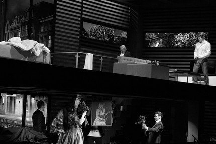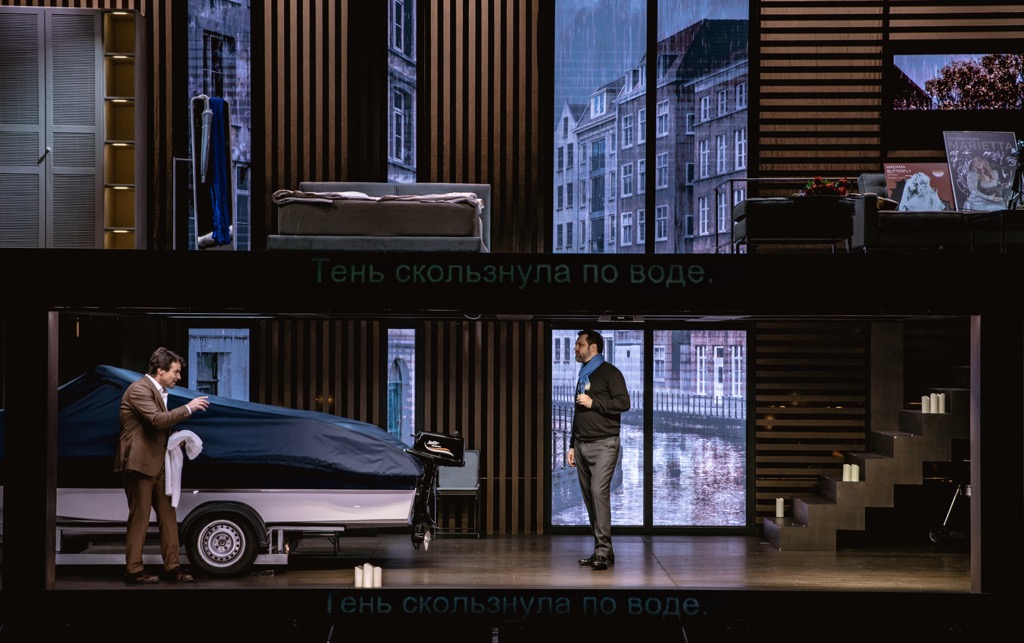 Оркестр и дирижер размещены за коробкой-«лифтом» на сцене, дирижер общается с солистами исключительно с помощью камер и мониторов, а актеры находятся максимально близко к зрителю, что эмоциональный контакт с публикой, несомненно, усиливает. Герои оперы, наши современники, выходят на сцену в функционально продуманных костюмах от Ольги Шаишмелашвили. А всей этой довольно элегантной, однако абсолютно не гнетущей интерьерной обстановке с экстерьерными пятнами вечнокаменного Брюгге, сквозь которые в финале в дом Пауля вдруг врывается огненная поступь религиозной процессии праздника Святой Крови, картинный лоск придает художник по свету Александр Сиваев. Одним словом, всё на сей раз продумано, всё работает на сюжет, но сам Брюгге предстает теперь «мягким и бархатным», а сама драматургическая коллизия – намеренно сглаженной, нивелированной как сценографией, так и следованием «бескровной» режиссерской идее.