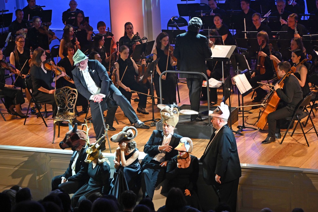 Заветной цели посетить очередную оперную премьеру не было, хотя все мероприятия в стенах этого театра, на которых довелось побывать рецензенту, кучно расположились в афише вокруг пилотного проекта «Праздник для слонов», открывшего 19 апреля на Малой сцене театра новый большой цикл под названием «Гротеск и юмор». Идея рождения цикла принадлежит художественному руководителю и главному дирижеру НОВАТа Дмитрию Юровскому, но справедливости ради следует упомянуть первую ласточку подобного рода – концерт «Юмор в музыке» из произведений Дмитрия Шостаковича, который в 2018 году состоялся как одиночный проект и продолжения на тот момент еще не предполагал.