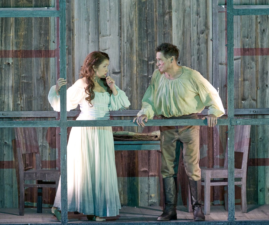Прекрасный в прошлом исполнитель партии Риголетто, 63-летний Саймон Кинлисайд харизматически отыгрывал трагедию 50-летнего шута, 42-летняя Эрин Морли очаровательно смотрелась в образе 16-летней Джильды, 43-летняя Моника Бохинец в образе опытной бандерши Маддалены уверенно атаковала простуженного Герцога в исполнении 36-летнего Бенжамена Бернхейма. Достойно играли все. Звучал достойно только простуженный Б. Бернхейм, Евгений Солодовников (Спарафучилле) и хор. Кинлисайд форсировал звук, Морли передавливала верха и сипела на пиано, Бохинец звучала красиво, но вполголоса, будто боялась травмировать коллег.