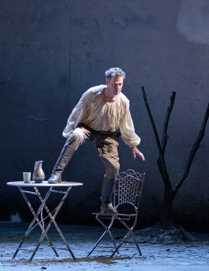 Из этой идеи вырастает и простая символика спектакля, и его оформление, перекликающееся с живописными приёмами эпохи Возрождения, в поздний период которого и разворачиваются события драмы Виктора Гюго «Король забавляется», ставшей основой либретто Ф.-М. Пьяве, и на которое указывает крой костюмов (сценограф Кристоф Хетцер). Ничто в этом спектакле не отвлекает от вокально-инструментальной роскоши вердиевской партитуры. Казалось бы: играй и пой, — никто тебе не мешает. «Риголетто» Верди — действительно образец жанра: здесь всё сложно и просто одновременно; ни одной лишней ноты и невероятный простор для актёрской самореализации.