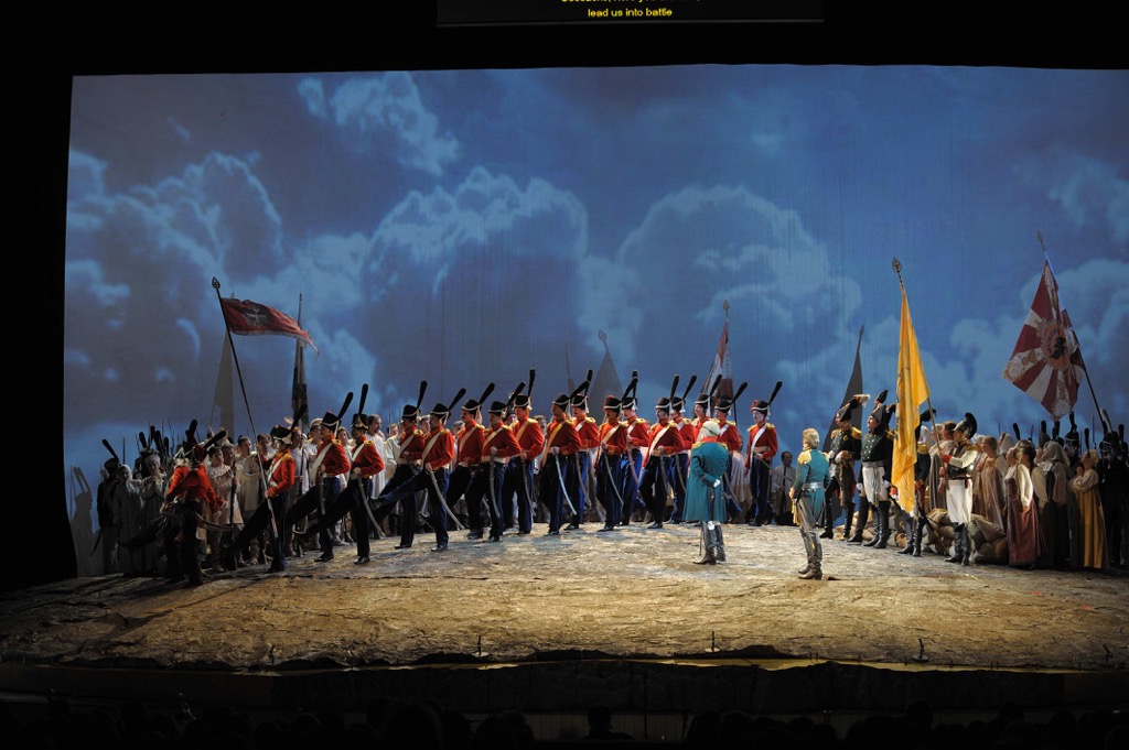 Постановка Андрея Кончаловского – третье обращение театра к опере «Война и мир». До этого она ставилась в Мариинском в 1977 году и в 1991-м – в год 100-летия Сергея Прокофьева. В 2000 году опера, поражающая гигантскими масштабами, обилием сцен, действующих лиц, драматизмом, приобретающим титанический размах, обрела свое сценическое воплощение в эпическом спектакле. Сложные декорации весом более 60 тонн, около 1 000 костюмов, более 200 артистов и почти 4 часа гениальной музыки. Эта постановка стала одной из самых известных в репертуаре Мариинского и была показана на многих прославленных сценах мира.