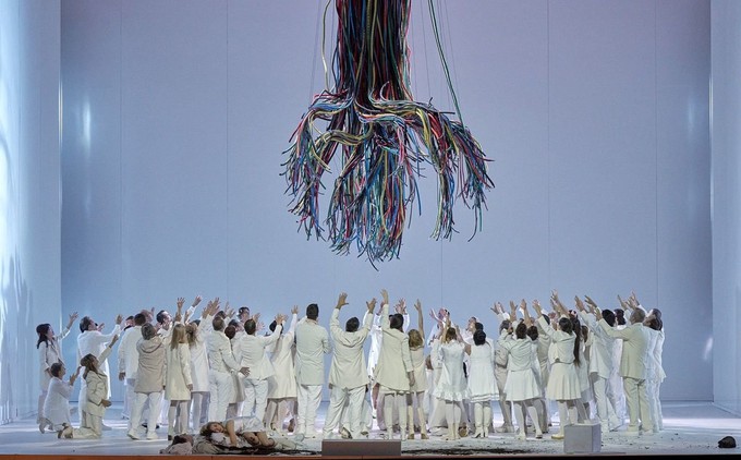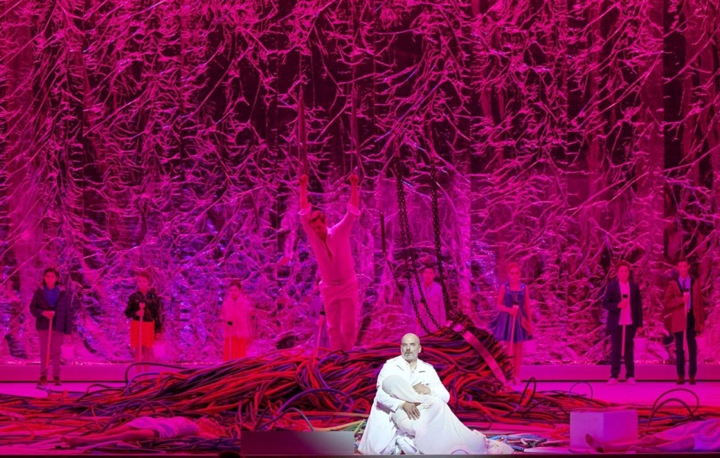 С точки зрения режоперного [4] мейнстрима постановка Биейто, — конечно, пиршество плагиата. Режиссёр берёт и, не стесняясь, ворует абсолютно всё: от света, цвета до мизансцен. Тут и прошлогодняя байройтская «Валькирия» Германа Нича, и мюнхенская «Русалка» Мартина Кушея, и «Тангейзер» Кастелуччи, и даже Бунюэль не остался в стороне, — вот прямо глаза разбегаются от наворованных цитат: настоящая оперная энциклоБРЕДия.