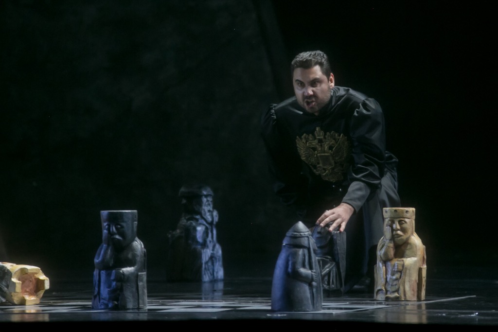 Продолжим идти «по голосам» теноров и далее. Совершенно изумительным Шуйским два дня кряду предстал солист из Москвы Игорь Вялых, а подлинным открытием в партии Юродивого – небольшой, но такой важной для разработки сюжета! – стал солист театра Игорь Горбань. Не сильно – всего лишь номинально и по факту – в партии Щелкалова «впечатлил» Михаил Родионов, хотя из партии Щелкалова можно, в принципе, сделать интересную «картинку». Приглашенный из Москвы Артём Борисенко, также выступил в двух спектаклях, но в партии Пимена произвел смешанное впечатление. С одной стороны, он показал и актерское мастерство, и музыкальную прочувствованность роли, но, с другой, вокальную линию певца не отличали ни академическая ровность, ни теплота интонации, из-за чего звучание являло гротесковую резонированность и рыхлость…