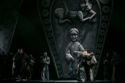 Но одно дело – превосходная, совершенно изумительная постановка «Иоланты», маленького, да удаленького романтического шедевра Чайковского, премьера которого состоялась на этой же сцене в октябре, и совсем другое – «Борис Годунов» Мусоргского, который на сей раз предстал впечатляющим «образчиком» большого постановочного стиля, хотя подход зиждился не на традиционной эпичности и живописно-помпезной историчности, а на символистском монументализме сценографии, функционально-современном дизайне костюмов и мистике психологических мизансцен.