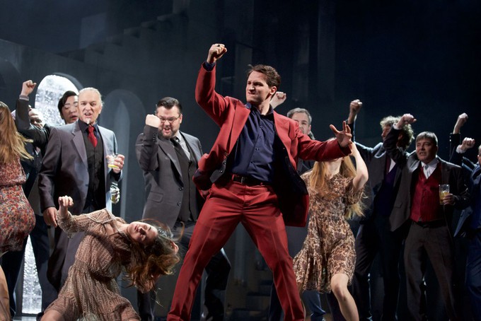 Сложнейшая вязь мизансцен и пластической динамики использована для создания образа Герцога: мы видим и экспрессивные переходы из алкоголического состояния в наркотическое опьянение, и акробатически сложные трюки с залезанием на бензоколонку и даже на балкон второго этажа, и искренне детскую влюблённость в новую девушку-игрушку, и флирт в стиле садо-мазо с сестрой своего будущего убийцы, — словом, настоящий фейерверк ситуативных ролей и состояний. И несмотря на простуду в этой партии неотразимо-харизматичного негодяя с блеском выступил румынский тенор Лучиан Краснек, уверенно озвучив вставные верхние ноты.
