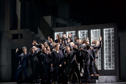 Не исключено, что именно эти традиции органичного присутствия на сцене больших ансамблей, решающих, кроме чисто музыкальных, также и артистические задачи, стало важным ключом к успеху на сцене театра такого непростого театрального произведения, каким является спектакль австрийского режиссёра Герберта Фёттингера.
