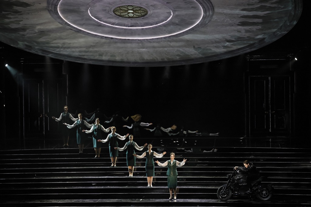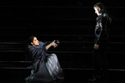 Но с романтическим «волшебством» сюжетной коллизии, должной, по идее, утопать в идиллии живописной природы и горных ландшафтов, постмодернистский – иррационально прямой – режиссерский подход латышского «умельца» начисто расправляется, и в итоге психологическая многогранность этой простой истории остается за кадром. С открытием занавеса перед нами – зеркальное отражение партера зрительного зала, наполненного зловеще-черной, тягостной аурой. А о том, что это именно Новая сцена Большого театра, банально напоминает униформа выведенных на сцену капельдинерш. В надуманной и уродливой режиссерской фантасмагории, которую лишь по недоразумению мы называем спектаклем, именно они и распоряжаются «порядком». До романтизма ли тут, ведь одна из капельдинерш и есть тот Добрый гений (Ангел), что тщетно пытается спасти Тамару от чар Демона, но после демонически любовного поцелуя ада лишь способен спасти ее душу.