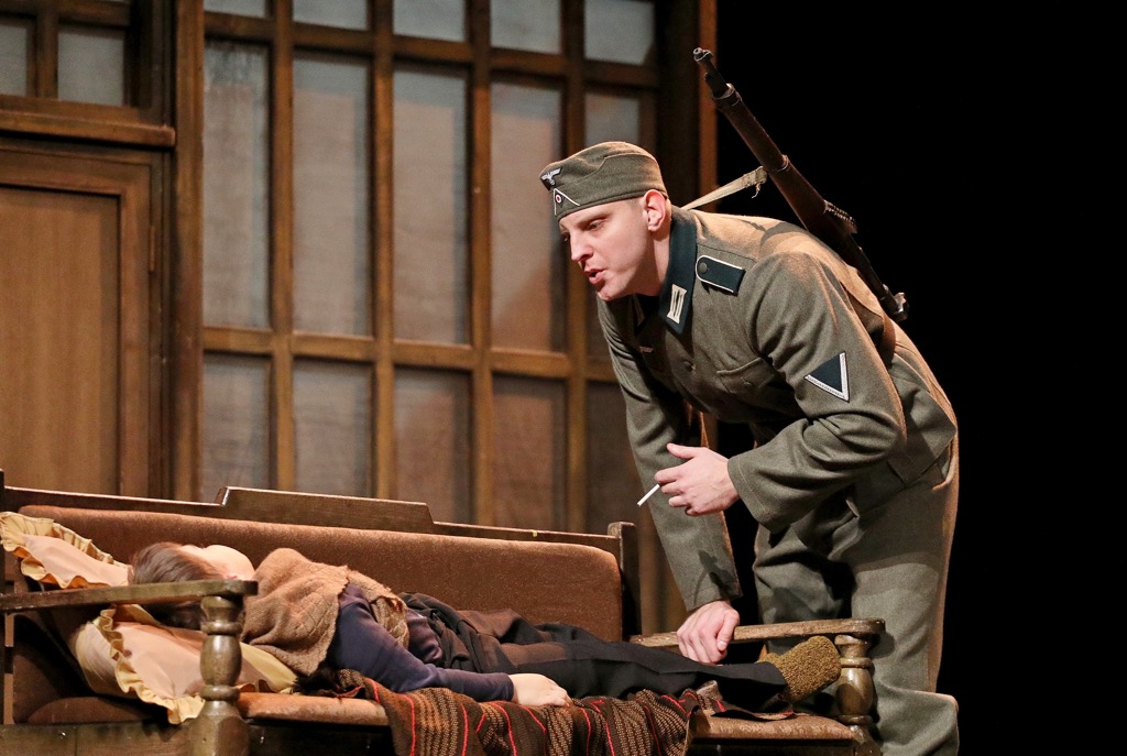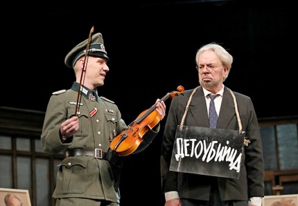 Мы видим, что сюжетная пружина этой пьесы, весьма изобретательно закрученная на противостоянии Анны и Руммеля, раскручивается по ряду направлений, и главное из них, конечно же, – триумф Анны, погибающей, но не сломленной, доводящей акт мщения до победного финала. В рафинированно-интеллектуальном по форме, однако до мозга костей дьявольском по содержанию прочтении Евгения Тюфякова майор Руммель – антагонист на редкость яркий и «респектабельный». С трагедийной глубиной Анны его вальяжность на сцене встает практически вровень, но и стратегически, и тактически, ибо так заложено в пьесе, главная героиня в противостоянии с врагом постоянно оказывается на шаг впереди!