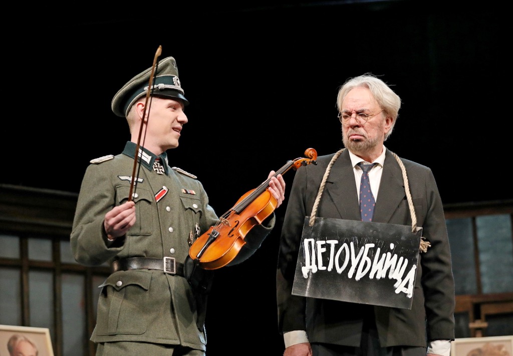 Провокацию по отношению к Анне устраивает сам Руммель, блефуя тем, что ее муж Алексей, ибо все прекрасно понимают, что он ушел к партизанам, якобы схвачен новыми властями. Выяснить, что это не так, как раз и удается добряку Берману, чья аллегорически протестная музыкальная характеристика в нынешней постановке, производящая глубоко щемящее и пронзительно светлое впечатление, – звучащий вживую популярнейший вальс Крейслера «Муки любви» (солист-двойник этого персонажа – скрипач Альберт Жмаев). Именно по тому же принципу в спектакле звучит и другая «живая» скрипичная пьеса – «Мазурка» Венявского, однако с этим номером всё гораздо «хитрее»…