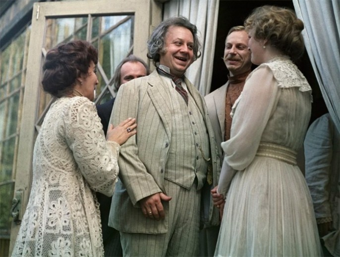 Вообще, «Неоконченная пьеса для механического пианино» (1977) — это не об интеллигенции Серебряного века, это об образованных людях позднего СССР. Среди персонажей выделялся герой Олега Табакова с его рефреном «Чумазый играть не может». То есть в этой экранизации чеховских произведений много эффектных деталей и характеров, но этот помещик «искрит» и полыхает даже на фоне ярких персон.