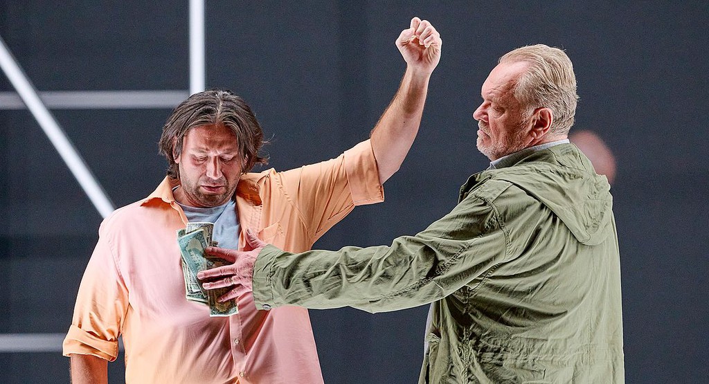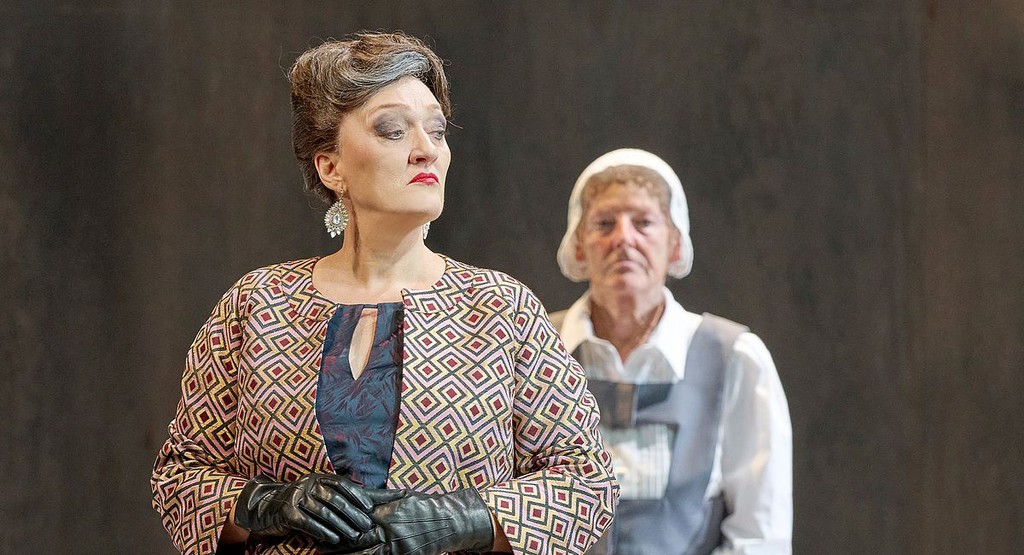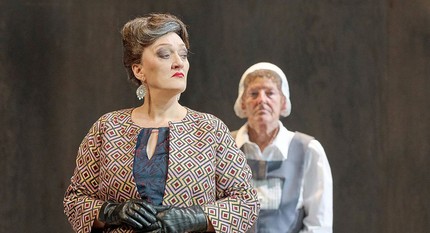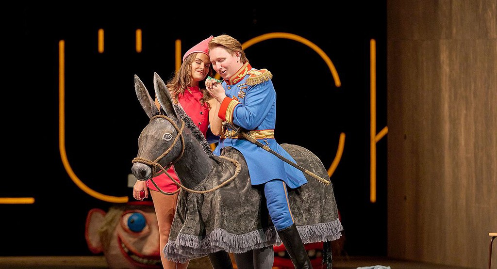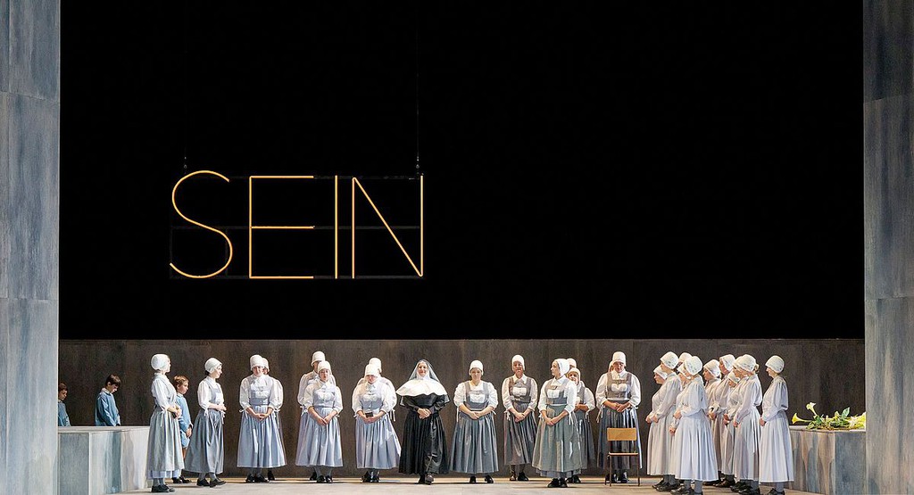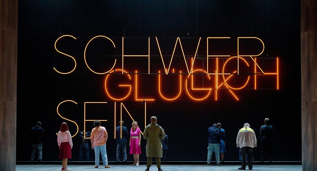 Центральный декоративный элемент сценографии Хенрика Ара — составленная из неоновых трубок и подвешенная на фоне серого задника реплика Жоржетты («Плащ») «Как трудно быть счастливым» [3] — не оригинален: такое было, например, в зальцбургском «Фаусте» в 2016 году. А костюмы, придуманные Сильке Вилльретт, и вовсе превращают внешние достоинства артистов в недостатки [4]. Впрочем, мизансценная программа спектакля не лучше.
