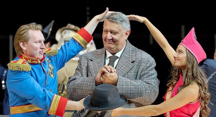 Возвращаясь к теме, вынесенной в название рецензии, замечу, что лучше всего режиссёру удались поклоны, когда исполнители главных партий «Триптиха» расступаются, и в центре появляется один из главных героев вечера — маэстро Филипп Жордан. Зал взрывается криками «браво», на авансцену летят букеты, и всё произошедшее вдруг обретает законченный смысл — чествование музыкального мастерства коллектива Венской оперы. Это красиво, это стильно, это радует и окрыляет в отличие от протестных «бу», адресованных постановочной команде. Команду, с одной стороны, жалко. С другой: если ты специалист средней руки, вынужденный работать с такими артистами и музыкантами, благодаря которым неудачный спектакль язык не поворачивается назвать провальным, то как бы тебе ни хотелось нарядить их в уродливые нелепые костюмы и заставить кривляться и дурачиться безо всякого повода, всё равно ничего, кроме грустного сочувствия, работа твоя не вызовет.