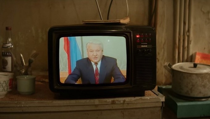 Отображение событий сделано с почти хроникальной точностью и кадры выхвачены прямиком из репортажей-1993. Костры, флаги, палатки, пение под гитару. Итак, Виктор оказывается возле Дома Советов, а его супруга Лена бежит в район Тверской улицы, где кучковались сторонники рыночной воли. Одна из идей романа и фильма — бытийный разлом коснулся каждого семейства.