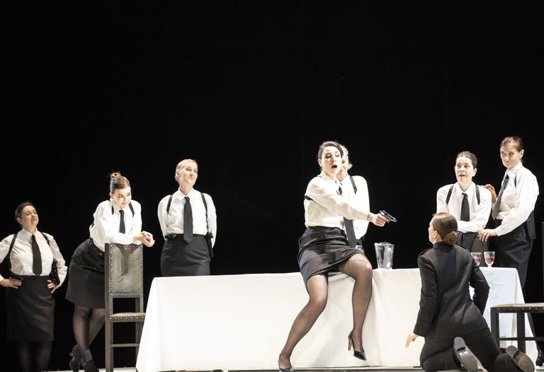 Когда у вас принцесса Эболи выглядит, как Барбара Крайн, пытавшая холодом ребёнка в одном из семнадцати мгновений весны [2], а Елизавета Валуа — звучит как тётушка кабаретистка-трансвестит из Бразилии, где в лесах много диких обезьян с похожими некондиционными голосами, — то к уровню такого оперного театра серьёзные художественные критерии применять бесчеловечно. Поэтому, снизив планку, оценим спектакль с позиции посетителей какой-нибудь оперной студии дома культуры какой-нибудь успешной птицефабрики.