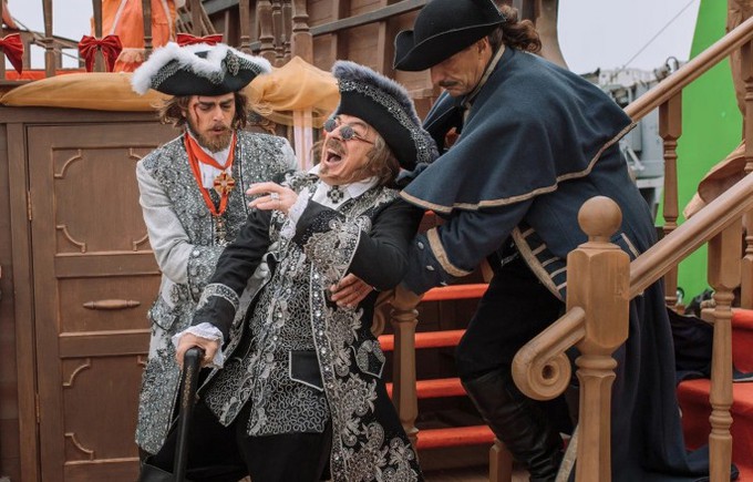 Плюс — непременные усы-бороды. В таком виде ходили корсары, и если была поставлена задача — передать привет «Пиратам Карибского моря», то она — сия задача — была решена правильно. Сплошные флибустьеры заместо кавалеров! В кадре — масса лишних персонажей, ничего не значащих для развития сюжета. Какую смысловую нагрузку, допустим, имеет образ полнотелой дамы в исполнении Анны Семенович? Выказать могучие стати, обтянутые портьерным шёлком?