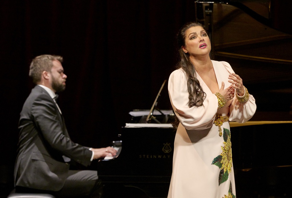 Анна Нетребко — оперная певица, органично существующая только в полноценных костюмированных спектаклях. В минималистских постановках и в концертах без частых переодеваний эта певица моментально теряет значительную часть своего профессионального обаяния. Неслучайно певица декламировала стихи, постоянно перемещалась по просцениуму, а в «Серенаде» даже элегантно танцевала: ей явно не хватало драматургического контекста (Мы все хорошо помним тот «праздник урожая», который примадонна устроила на свой юбилей в Кремле и который мало кто смог досмотреть до конца.). Это — во-первых.