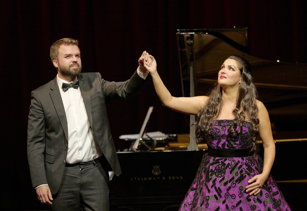 Во-вторых: изумительный обертоново богатый голос певицы критически не подходит для камерного репертуара на больших площадках под рояль. И это несмотря на то, что концертмейстер — великолепный пианист и педагог Павел Небольсин — сам по себе был ярким украшением вечера. Эстетика романса — это особый стиль, которым певица такого уровня, разумеется, владеет, но в котором сказать ей совершенно нечего. Музыкальная интимность — не лучшая сфера применения таланта Анны Нетребко.