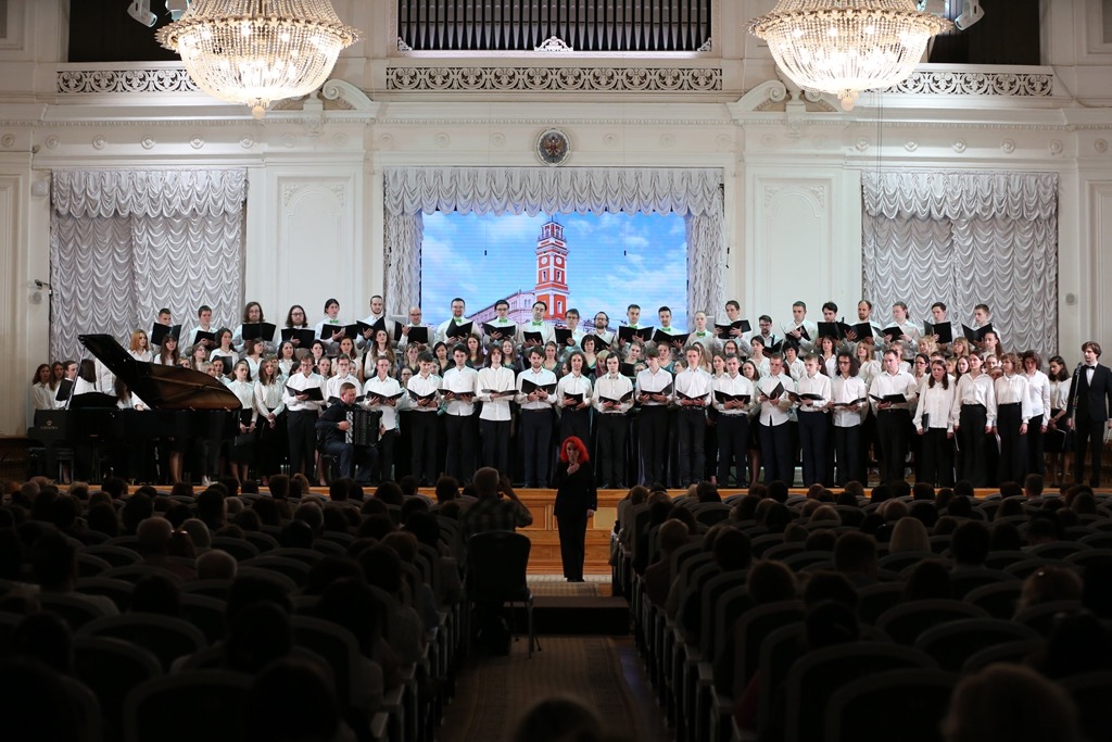 Второй отчетный концерт собрал на сцене роскошного Белого зала Политехнического университета все взрослые хоровые коллективы школы под управлением целой плеяды молодых талантливых педагогов, в числе которых Ольга Зиновьева, Вера Сласная, Федор Александров. Более 250 учащихся с огромным воодушевлением исполнили хоровую хронологию русской музыки от петровских кантов до хоров Д. Шостаковича и Г. Свиридова. Волнующая «Песня о тревожной молодости» в исполнении сводного хора школы завершила этот концерт.