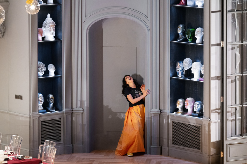 Признаться, я не очень понимаю, зачем сублимировать сексуальную неудовлетворённость пубертатной барышни в шизоидное помешательство вместо того, чтобы просто по тексту отрезать пророку голову, хоть бы и в элегантном современном буржуазном интерьере: как известно, в таких интерьерах вообще-то все только этим и занимаются. Но режиссёр будто стеснительно прикрывает ладошкой рот, как бы подмигивая нам: ну это же всё понарошку, никакой головы никто никому не отрезал, а вся библейская история, как и драма Оскара Уайльда, и партитура Рихарда Штрауса, – есть некое оскорбление чувств правящих и вообще всё это фейк-ньюс. Эта самоцензура в наше тревожное время, конечно, объяснима, и позиция постановщика, конечно, понятна, но вкупе с отмеченными недостатками спектакля производит очень плачевное впечатление.