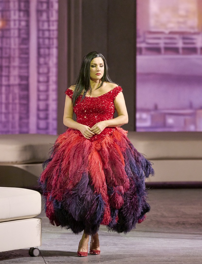 С первых сцен, следующих за вступительным хором бедных жителей Амьена, у которых «один бог — надежда», мы видим девушку, для которой рай с любимым в шалаше неприемлем: если любимый беден, то тогда сойдёт и нелюбимый, лишь бы с дворцом (или дорогим пентхаусом, как в многофункциональных декорациях Энтони МакДональда).