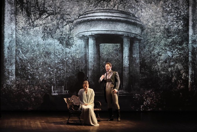 На этот раз в силу подспудной камерности лирических сцен оказалось возможным вывести на сцену и хор. Он был сформирован из здешних студентов, хотя в постановках Центра с масштабными хоровыми страницами последние могли быть просто купированы, как, к примеру, в «Царской невесте» Римского-Корсакова (в одном из первых проектов). Либо же хоры могли исполняться за пределами осязаемого из зала пространства сцены, как, к примеру, в «Фаусте» Гуно 2020 года.