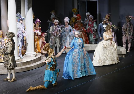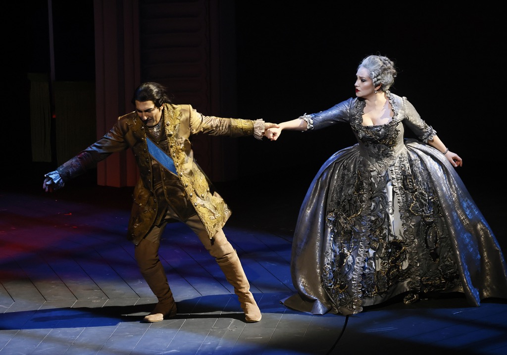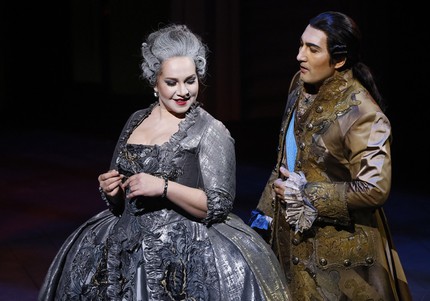 В достижении такого неистового накала простых человеческих эмоций, замешанных на извечных муках любви и ревности, сильная артистическая натура певицы и сценическое пространство, созданное командой во главе с режиссером Евгением Писаревым, сошлись воедино поразительно родственно. Подчеркнуто лаконичная сценографическая условность, изумительная стилизация исторических костюмов под эпоху французского Просвещения, прекрасная постановка света, пластика сценического движения и хореография сюжетно действенной балетной картины третьего акта, соединившись в этой постановке, создали ту интригующую атмосферу театра в театре, в которой зрительскому взору было необычайно тепло и уютно. Театр в театре XVIII века, увиденный режиссером из XXI века, состоялся!
