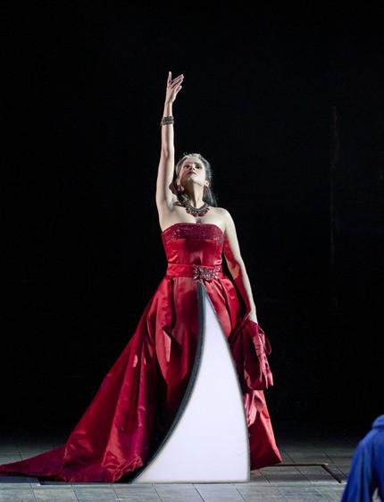 В основе режиссёрской концепции аскетическая сценография и три трюка, причём два связаны с фаллической символикой оперы.